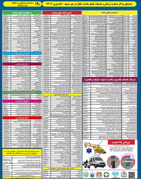 راهنمای مراکز منتخب درمانی و خدمات جامع سلامت فعال در شهر مشهد - 1403