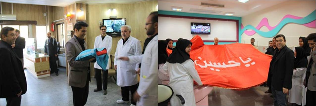 کارکنان پایگاه های فعال اهدای خون مشهد مقدس ضمن گرفتن نیروی معنوی مضاعف از زیارت پرچم بارگاه امام حسین (ع) مشغول خدمت به زائرین و مجاورین اهداکننده خون