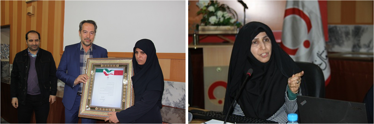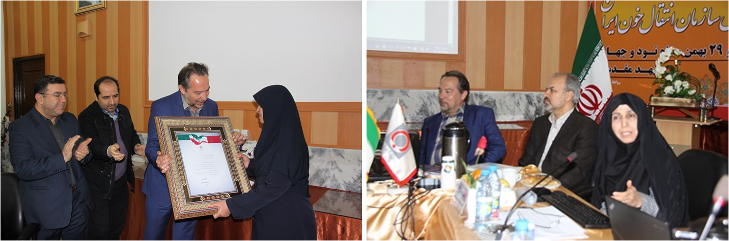 در ادامه به پاس زحمات خانم دکتر خسروی و با توجه به حضور فعال در مراکز اقماری و فعالیت در درمان بیماری تالاسمی و همچنین تلاش های برون سازمانی و اموزشی پژوهشی با سازمان انتقال خون ایران لوح سپاس توسط مدیرعامل سازمان انتقال خون ایران تقدیم وی گردید .