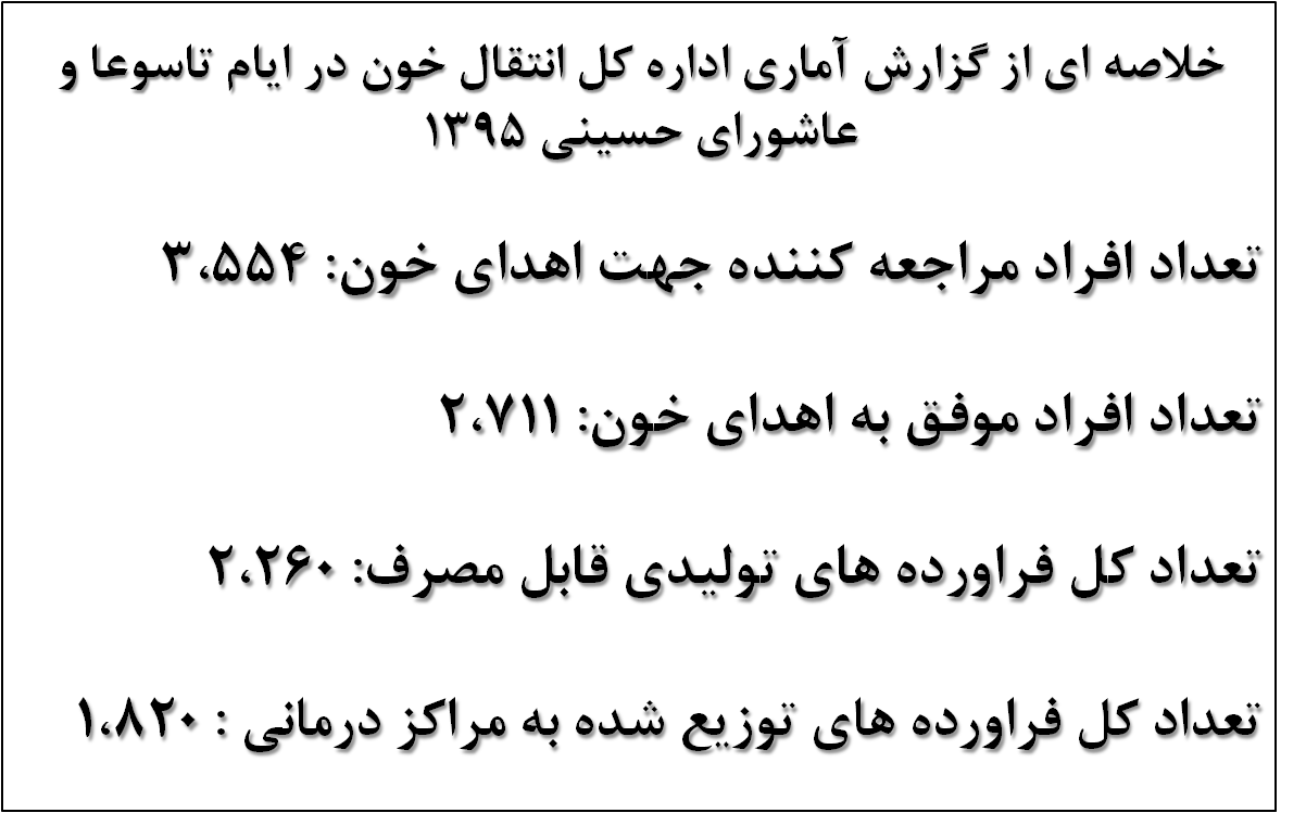 حضور پرشور عزاداران حسینی در ایام سوگواری تاسوعا و عاشورا باعث افزایش 21 درصدی اهدای خون در سطح استان خراسان رضوی گردیده است |