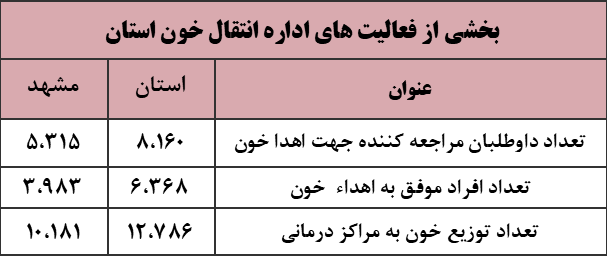 خلاصه ای از عملکرد و فعالیت های اداره کل انتقال خون در نوروز 98