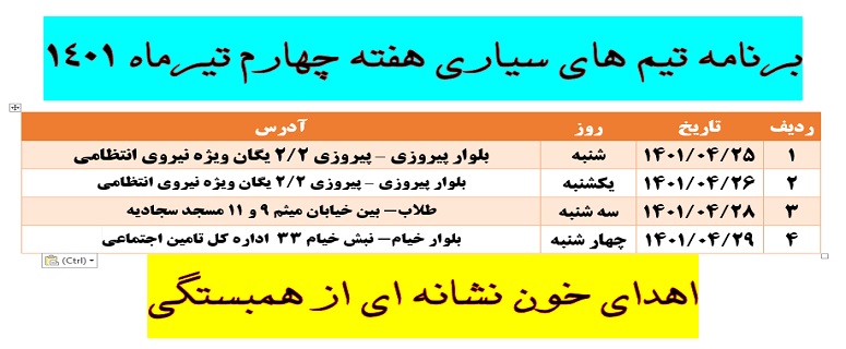 برنامه تیم های سیار سازمان انتقال خون