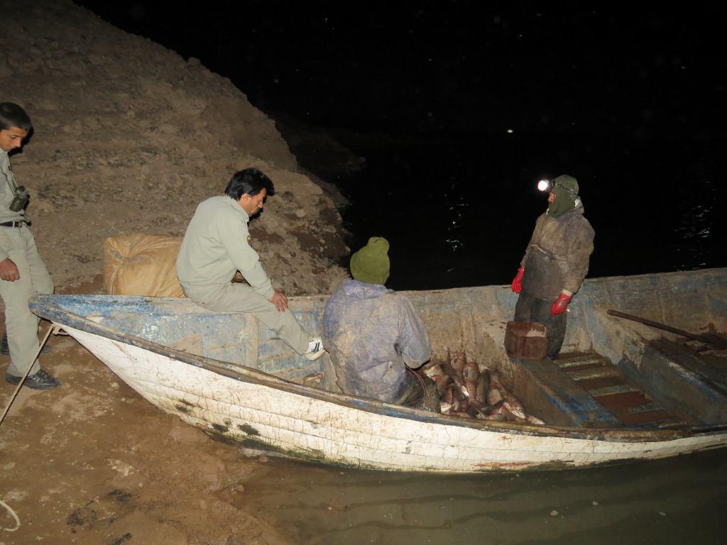 دو نفر صیاد حرفه ای آبزیان که با استفاده از یک فروند قایق موتوری در سد سده خواف ماهیگیری می کردند با اقدام به موقع ماموران یگان حفاظت محیط زیست خواف دستگیر شدند .