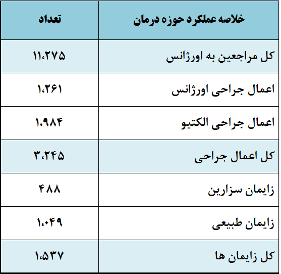 خلاصه ای از عملکرد حوزه درمان و مرکز حوادث و فوریت های پزشکی دانشکده علوم پزشکی و خدمات بهداشتی درمانی تربت جام در کمیته بهداشت، سلامت و محیط زیست خدمات سفر استان در تابستان 1395 |