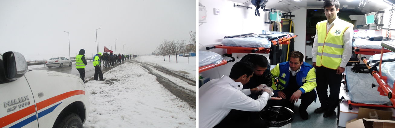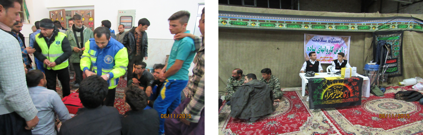 تشکیل 5 تیم درمانی و استقرار در محل موکب ها و مساجدی که بعنوان ایستگاه سلامت زائر در نظر گرفته شده بود