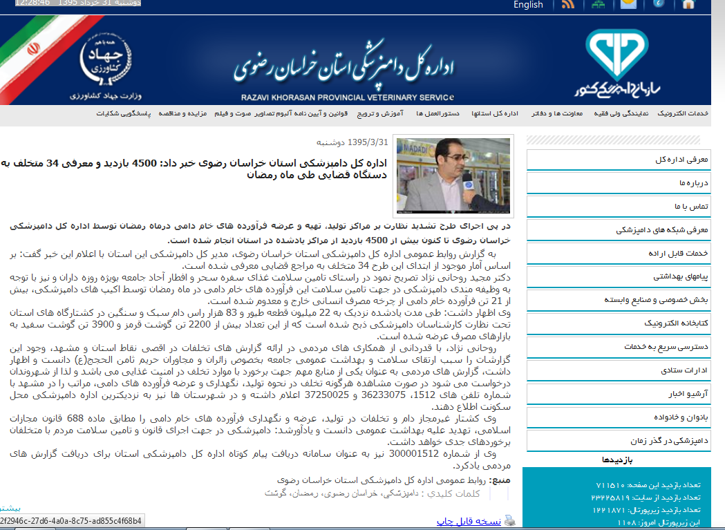 بازدید: 782 4500 بازدید و معرفی 34 متخلف به دستگاه قضایی طی ماه مبارک رمضان 4500 بازدید و معرفی 34 متخلف به دستگاه قضایی طی ماه مبارک رمضان فراورده های خام دامی ویژه ماه مبارک رمضان از تاریخ 95/3/16 لغایت 95/3/26 قبلی بعدی