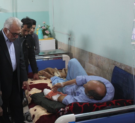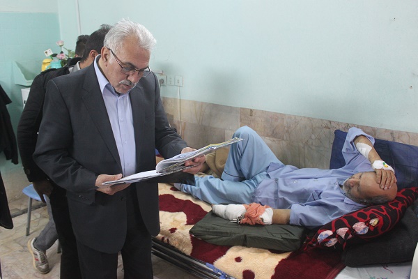 به گزارش وبدا، دکتر احتشام فر ،ضمن حضور در بیمارستان امام رضا(ع) و بازدید از بخش سوانح این بیمارستان از مصدوم چهارشنبه سوری عیادت کرد.