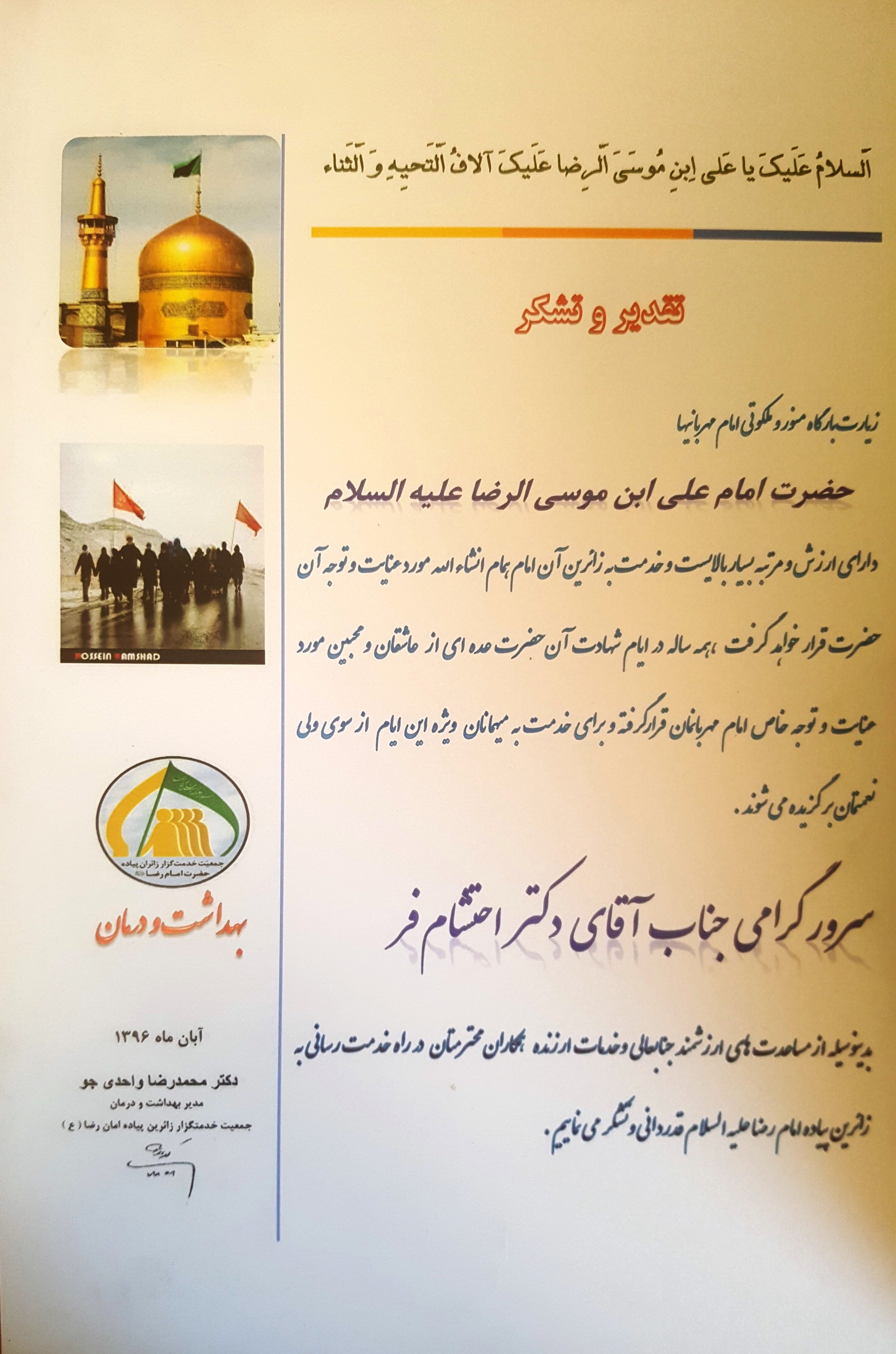 مورخ 96/9/2 جلسه ای با حضور اعضای جمعیت خدمتگزار زائرین پیاده امام رضا (ع)